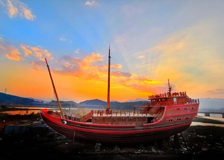 曾被損壞的全國(guó)最大仿古木船修復(fù)成功